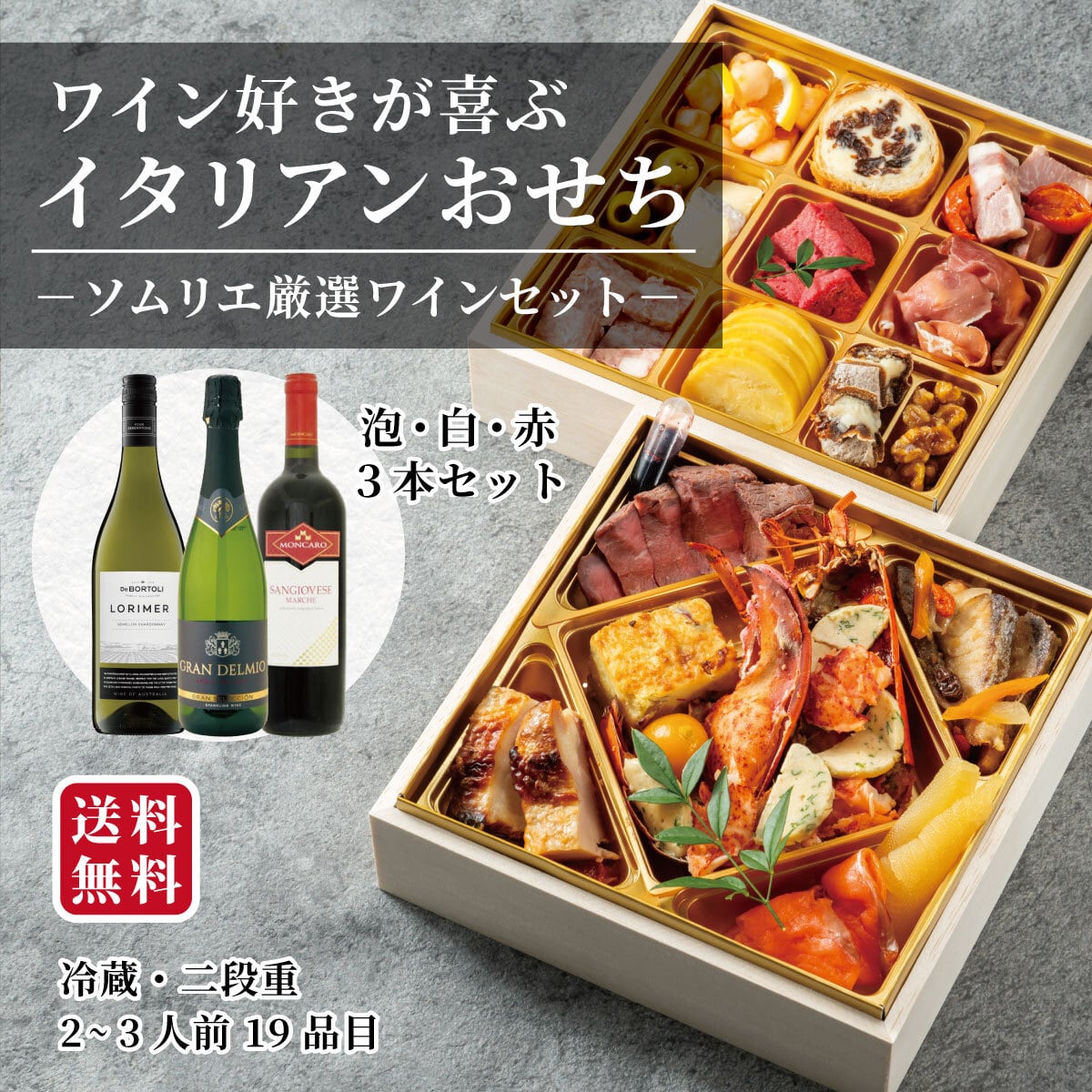 イタリアンおせち豪華二段重&おすすめワイン3本セット【送料無料&早割り】※12/30か31お届け